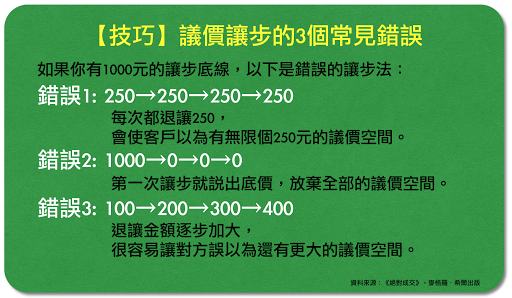 當客戶明確地表示有意購買時,成交就進入了「議價」這個階段。可想而知,當客戶認為「產品價格」高於「產品價值」,買賣雙方便會展開一場諜對諜的價格談
