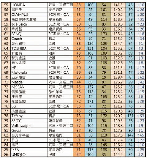 10月份經理人 品牌影響力 指標榜單:http://www.managertoday.com.tw/?p=17172