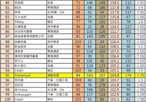 為進行跨產業比較,本指標將部分產業類別進行整併,以避免同一品牌有過多種產品重複排名。如將手機、平板電腦、筆記型電腦等類別整併為「3C家電、OA」,免除由於iphone、iPad或Mac等不同產品入榜,使同一品牌「蘋果Apple」出現次數過多。