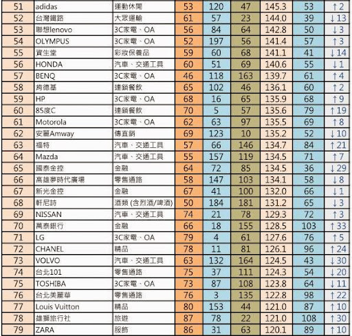 本次監測的品牌中,由於食品、飲料產業囊括的品牌數量過多,因此並未納入計算。