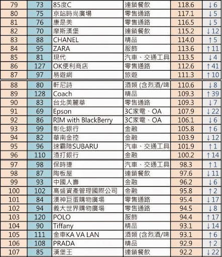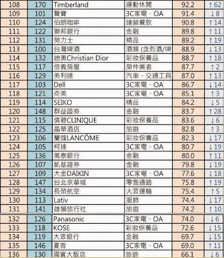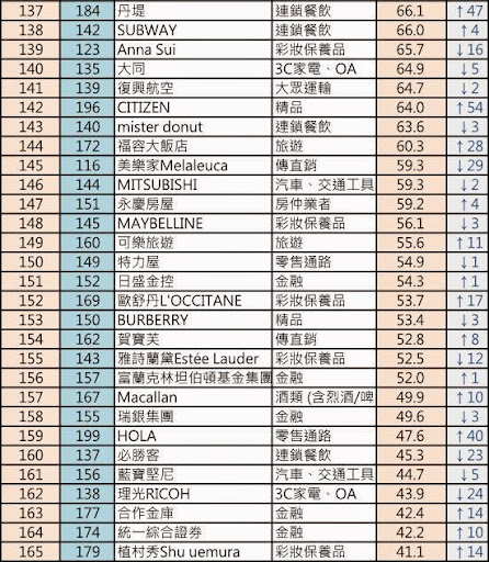 本次監測的品牌中,由於食品、飲料產業囊括的品牌數量過多,因此並未納入計算。