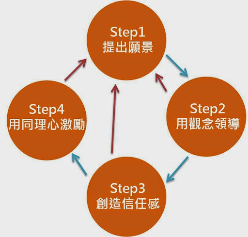 提出願景:願景是後面3步驟的基石,缺乏願景的領導者,即使做好後3個步驟,能贏得信任、激勵部屬,卻仍可能讓團隊迷失方向。