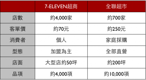 加入全聯,是否與老東家尷尬對打? 「競爭者不是同業,是顧客。」徐重仁分析,超市與超商的消費結構大不相同(見下表)。超商顧客多為個人,客單價約70元;超市顧客則以家庭為主,客單價高達250元。