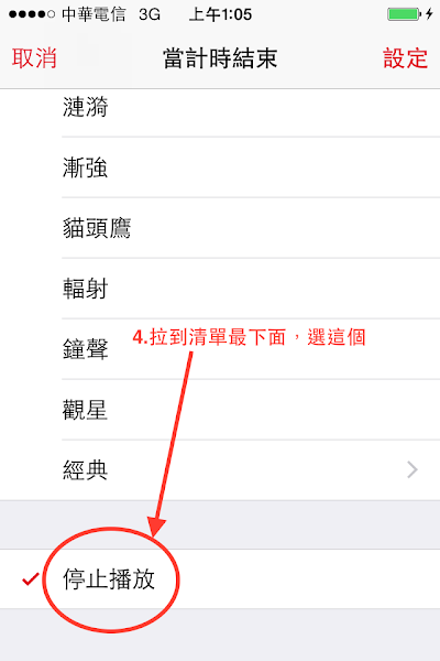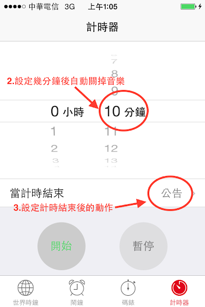 2&3. 選擇計時器 ,設定多久以後要停止音樂;進入「當計時結束後」。