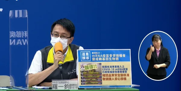 新冠肺炎新增88例本土,針對網傳「mRNA疫苗會使接種者變成轉基因生物體」,指揮中心強調:mRNA不會進入細胞核,不會以任何方式改變人體DNA。