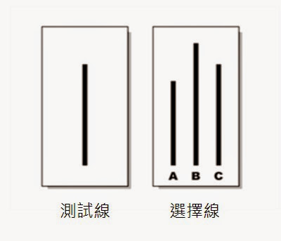 1951年,一位心理師所羅門.艾許(Solomon Asch)告訴一群受測者(學生),他要為他們做一項視力測驗(請見【圖】)。