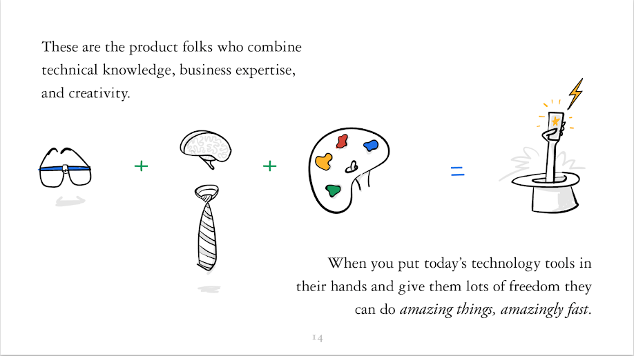 他們是結合技術知識、企業專長、和創造力的產品人。只要把科技工具交給他們、給他們發揮的自由,他們就會以驚人的速度、創造出驚人的產品。