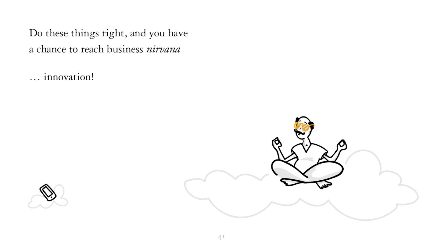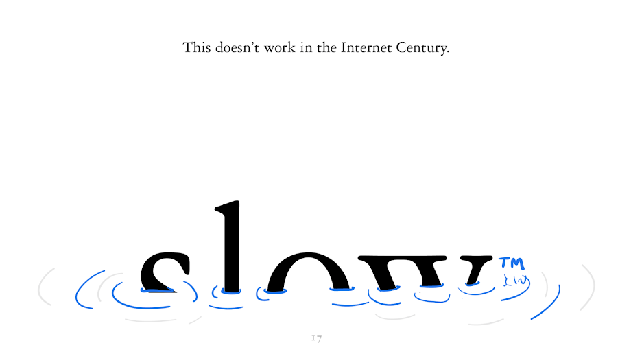問題在於,現在大部分的公司,目的都是讓風險最小化,而不是讓自由和速度最大化。訊息和數據都封鎖著,沒有分享出來。過去犯錯要付出昂貴代價,所以從長計議值得讚賞,而他們的規劃就是那個年代的遺跡,決策權只掌握在少數人手裡。