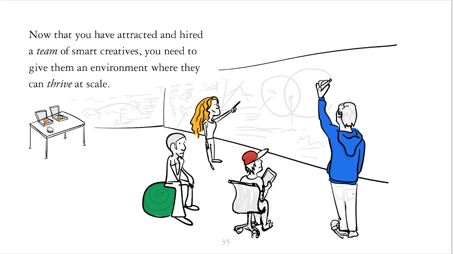 我們發現企業在今日要持續成功,唯一方法只有吸引聰明創意人來當員工、並為他們創造可以茁壯成長的環境。