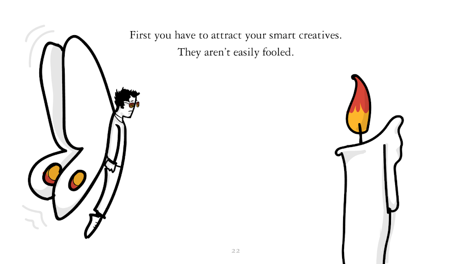 首先你必須吸引你那些聰明創意人,他們可不是能隨意愚弄的。