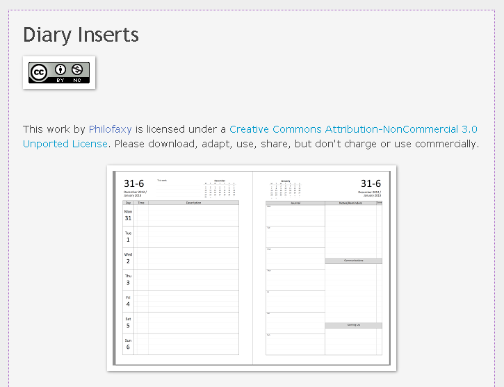 雖然 Philofaxy Diary Inserts 在設計上採用傳統的單色簡潔版面,但是他提供了各式各樣不同需求的計畫表變化可以下載,無論你想要做的是單日手記、兩日計畫、一週計畫、一月一年計畫,都可以找到符合的格式。