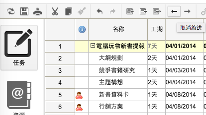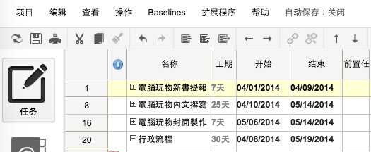 這部分就跟列舉待辦清單一樣,我們以專案的經驗與管理的設想,先把清單完成。而如果製作清單的過程中需要插入新的任務,或是移動任務順序,也都可以在上方編輯列找到功能按鈕。