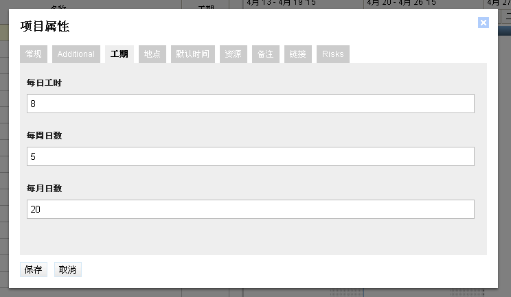 這時候可以設定項目的各種屬性,例如這個專案的開始日期、結束日期,這個專案是標準以日計時還是 24 小時計時等。