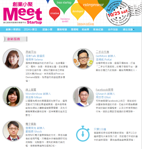 創業小聚台中場#3:Qsearch、雪爾萊克、滔客Talk、Wondershow、GetMore共5組團隊