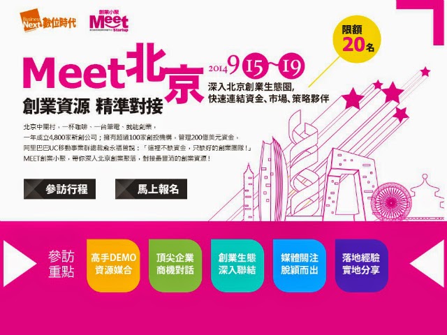 [Meet北京] 9/15-9/19深入北京創業生態圈