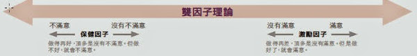 雙因子理論將個人對工作滿意度的影響因子分做「激勵因子」(motivator)與「保健因子」(hygiene factor)。激勵因子要盡力做得最好,因為做好了,員工就會滿意,如果做不好也還好,員工只是沒有滿意。反之,保健因子就要避免做不好,因為做不好員工就會不滿意,但是做得再好,員工頂多是沒有不滿意,也不會因此而滿意。
