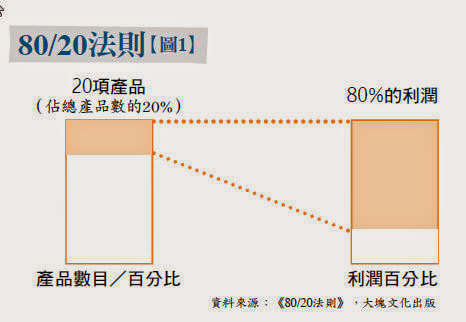 一小部分(20%)的原因、投入或人力,通常能夠產生大部分(80%)的成果、產出或酬勞,就是所謂的「80/20法則」。應用在商業上,80/20法則可用來說明,80%的產出源於20%的投入,或是80%的營業額(或利潤)是由20%的產品(或顧客)所創造(見【圖1】)。