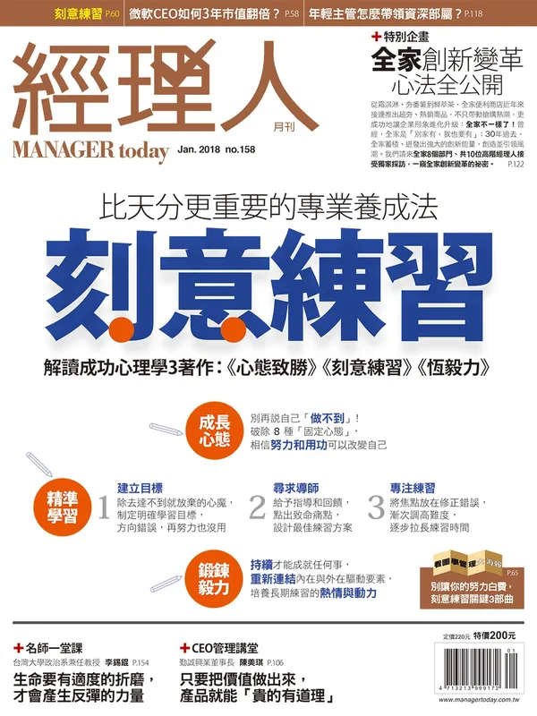 24 管理顧問的工具箱 徐瑞廷/ 手機、網路就能完成的事,別再讓顧客親自跑一趟! 28 創新商業模式 王建彬/ 價值主張決定成本結構,判定什麼該省、什麼該堅持 30 品牌管理現場 王馥蓓/ 2018品牌大改造:5法則為企業翻轉出好形象